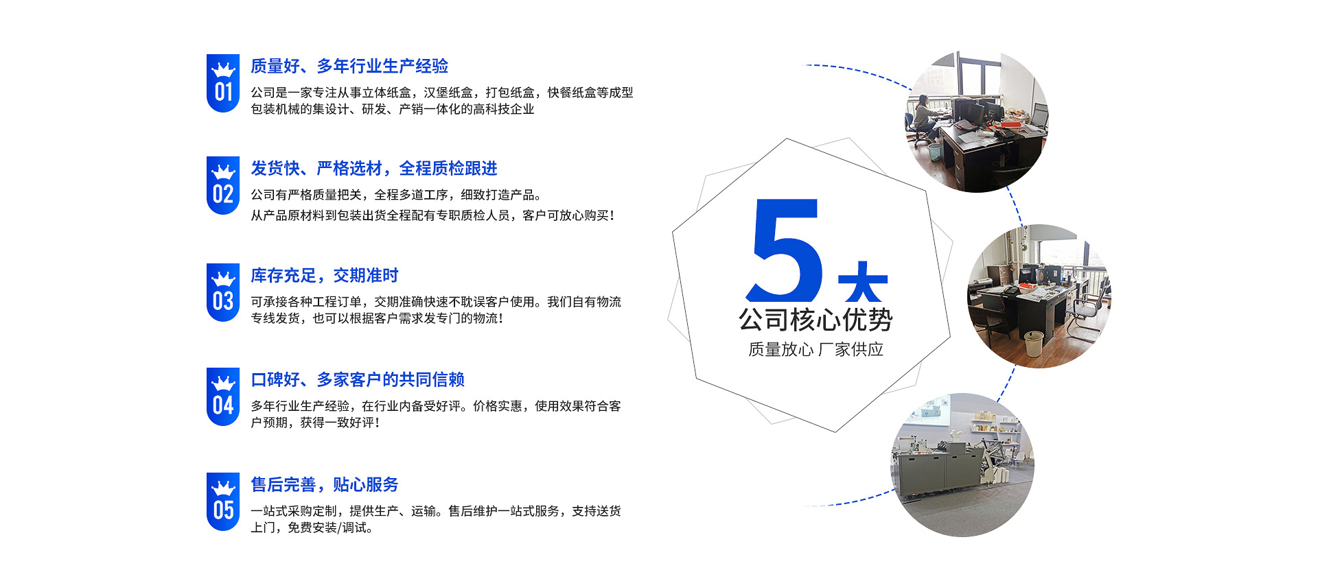 瑞安市中法機(jī)械有限公司是一家從事立體紙盒機(jī),漢堡紙盒機(jī),打包紙盒機(jī),快餐紙盒機(jī)等成型包裝機(jī)械的設(shè)計(jì)、研發(fā)、產(chǎn)銷(xiāo)一體化的高科技企業(yè)。公司有現(xiàn)代化的管理體系和完善的售后服務(wù)體系;有一支具有充滿青春活力的精銳研發(fā)團(tuán)隊(duì)!自成立以來(lái),中法公司堅(jiān)守“誠(chéng)信、學(xué)習(xí)、發(fā)展”的企業(yè)發(fā)展理念,堅(jiān)持“以誠(chéng)信為道、以質(zhì)優(yōu)取勝”的經(jīng)營(yíng)原則,在市場(chǎng)競(jìng)爭(zhēng)中取得了良好的社會(huì)和經(jīng)濟(jì)效益!
